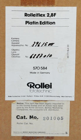 -Rolleiflex 2.8F PLATIN #346/500 edition camera set