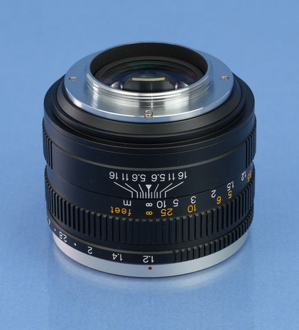 -A similar optical design to the extremely rare and desirable first version Leica 50mm f1.2 Noctilux lens