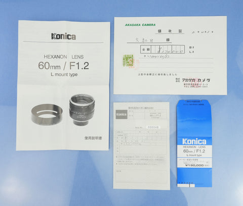 KONICA HEXANON 60MM F1.2 LEICA NOCTILUX LENS +CAPS +FILTER +BOX +FINDER MINT SET