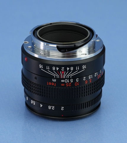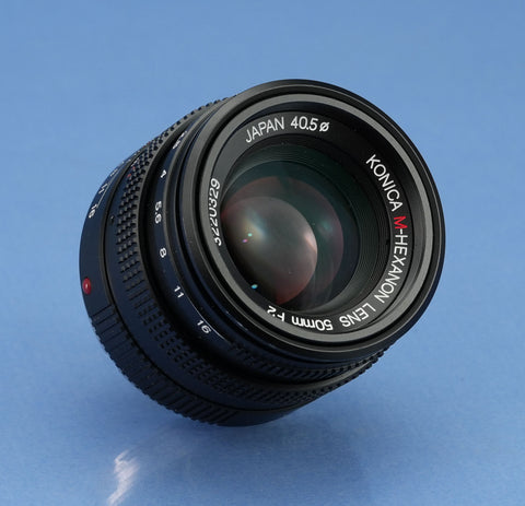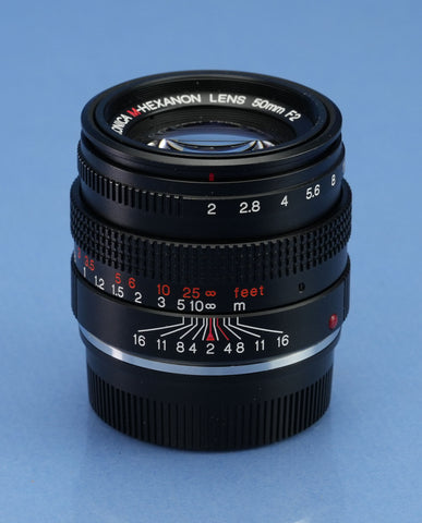 KONICA HEXAR RF BLACK RANGEFINDER CAMERA OUTFIT +50MM F2 LENS +BOX +FLASH +BOX!
